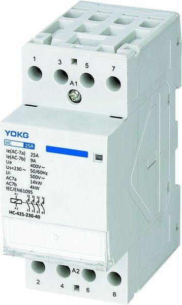 প্লাস্টিক সিলভার কপার মডুলার কন্টাক্টর 2P 4P 25A 48V 230V আলো নিয়ন্ত্রণ ব্যবস্থার জন্য